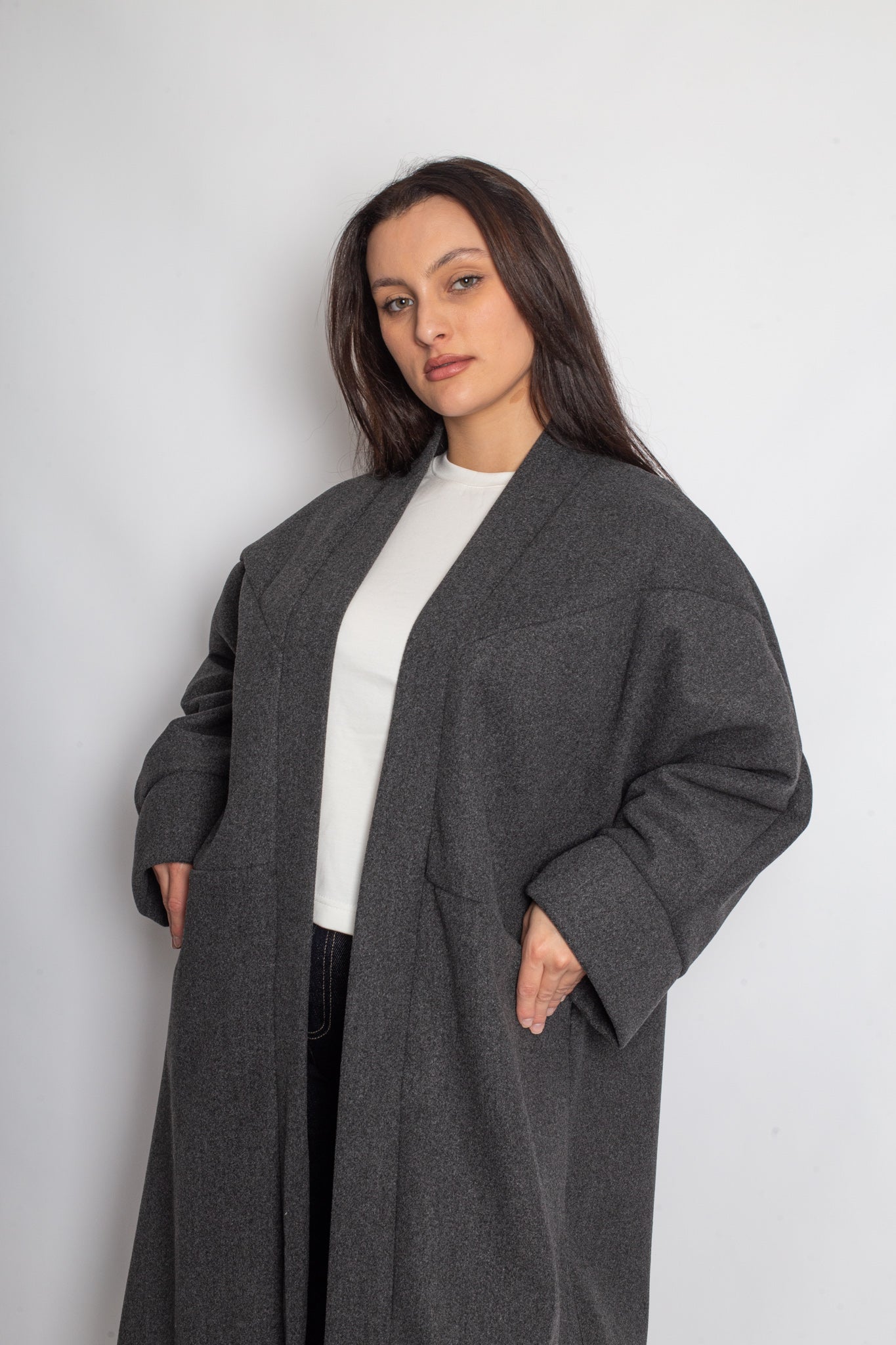 Veste longue oversize à la coupe fluide, parfaite pour les looks élégants et confortables de la mi-saison. Son design minimaliste et sa taille unique s’adaptent à toutes les silhouettes, que ce soit sur un jean ou une robe. Un essentiel chic qui se porte du matin au soir.